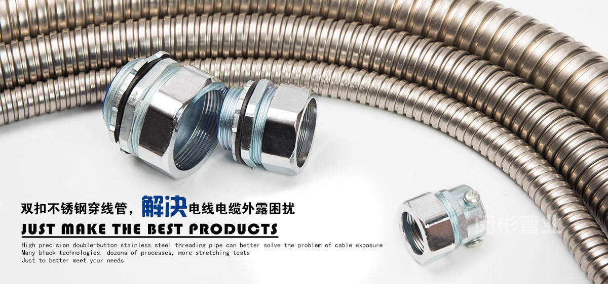 除此之外,公司還致力于金屬軟管接頭,普利卡管,普利卡接頭,不銹鋼穿線管的銷售。公司本著品種多、質量優、服務好的宗旨,不斷開發、創新產品,以滿足日益發展的市場需要。產品主要包括:金屬軟管接頭 ,橋架接頭,塑料軟管接頭,AD接頭,不銹鋼接頭,普利卡接頭,包塑金屬軟管,不銹鋼軟管,不銹鋼波紋管,不銹鋼編織軟管,普利卡軟管,尼龍軟管,塑料波紋管,尼龍拖鏈等機床配件。產品廣泛應用于建筑、機床、鐵路、車輛、化工、汽車、監控、建筑裝修、建筑裝飾、建材、裝修裝飾等行業。上海閔彬管業有限公司高質量包塑管在實際使用中多家工程單位的認可、使用與推廣。